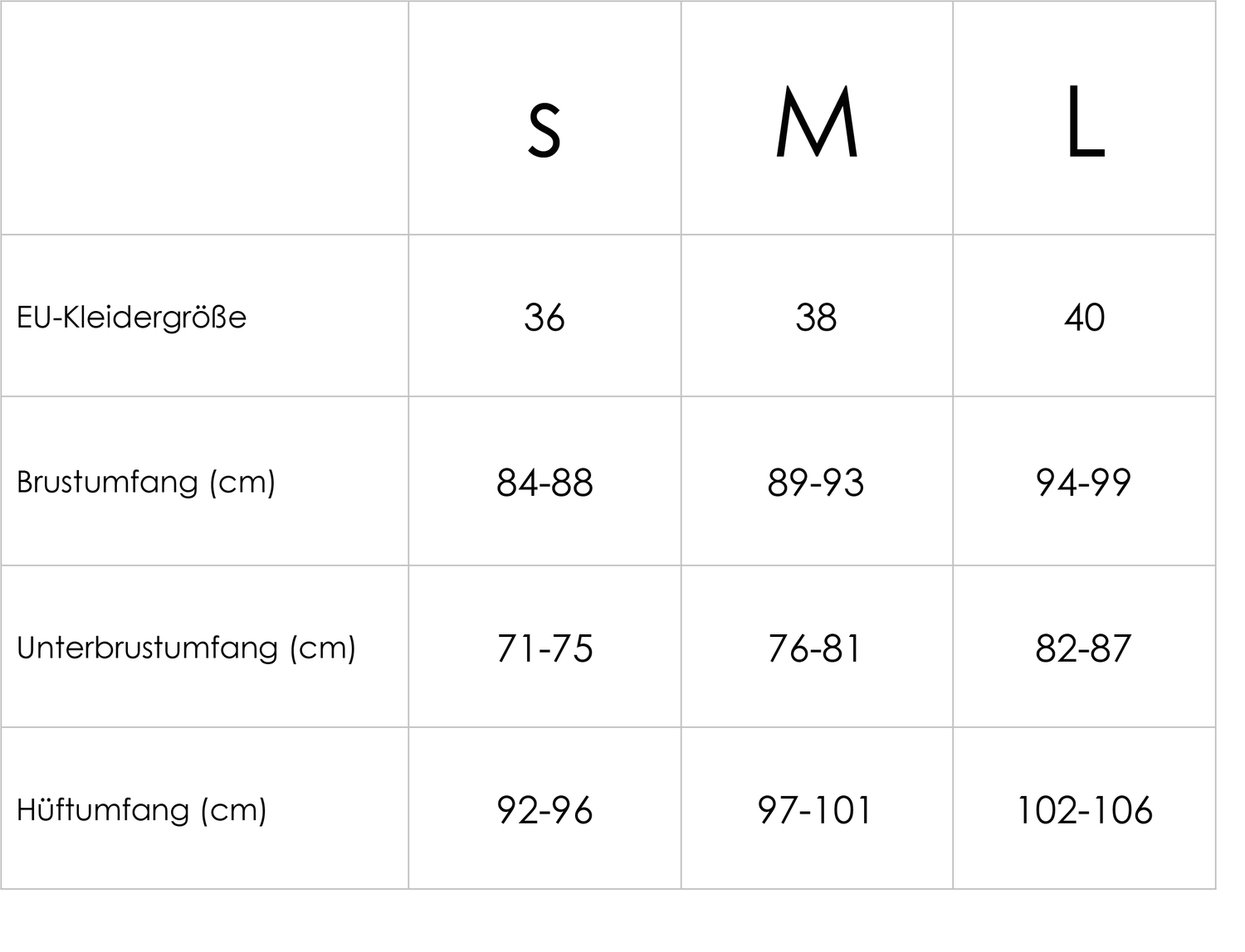 MAßTABELLE